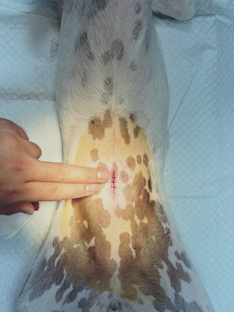最近本院使用超音波刀的手術傷口都非常小,母貓只需要一個食指寬,10多公斤的大狗也是兩個手指寬的手術傷口就可以解決,已經到微創的境界,再搭配大型麻醉機使用氣體麻醉+生理監視器監測手術中各項生理數值,以達到風險最低的手術過程,讓來萌寵手術的毛孩們都能開心健康出院