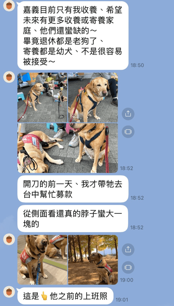 「院長,其實開刀的前一天,我才帶牠去台中幫導盲犬協會募款。」