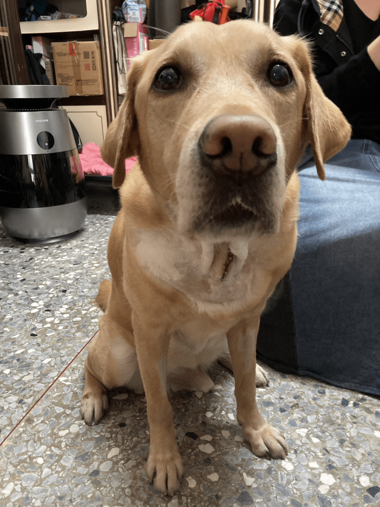 前幾天,Volvo從我們萌寵出院了。牠是一隻眼神極其溫柔的拉布拉多,身為退役導盲犬的牠,即便脖子帶著一個巨大如芒果、壓迫到連吞嚥都困難的頸部腫瘤,在診間裡,牠依然乖巧得讓人心疼。